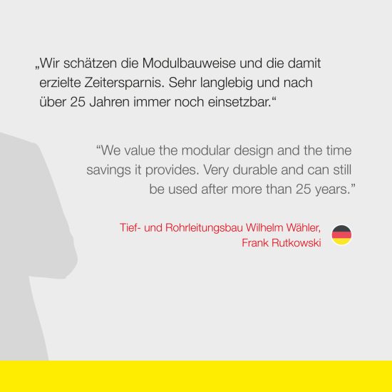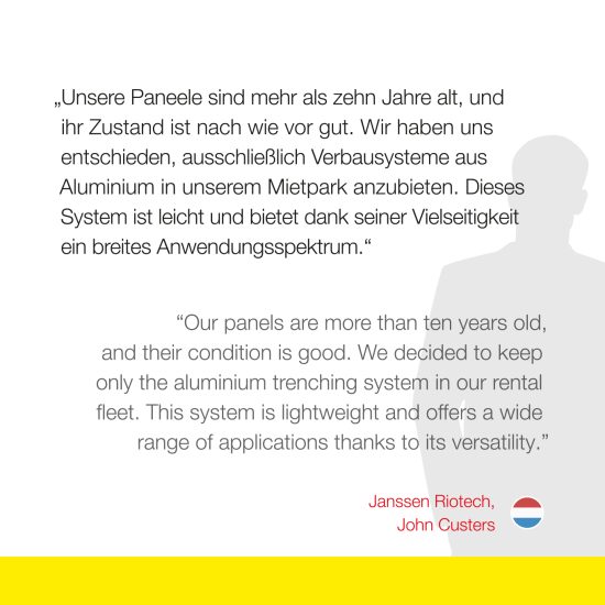 Thanks to its low weight, ease of use and durability, the Aluminium trenching system GIGANT has been one of the most popular systems worldwide for 40 years. Numerous user testimonials impressively highlight these strengths: