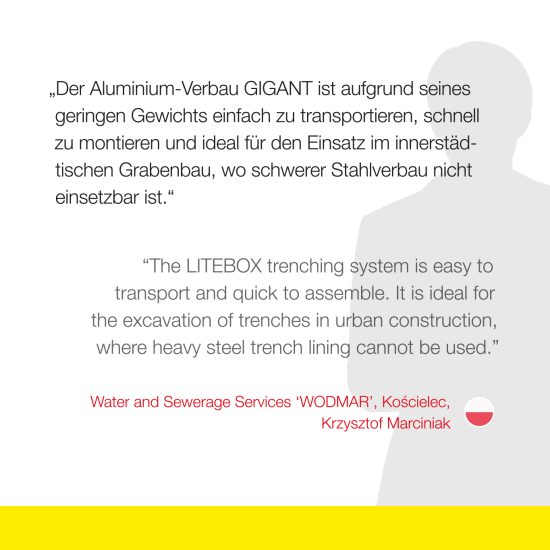 [text] => Thanks to its low weight, ease of use and durability, the Aluminium trenching system GIGANT has been one of the most popular systems worldwide for 40 years. Numerous user testimonials impressively highlight these strengths: