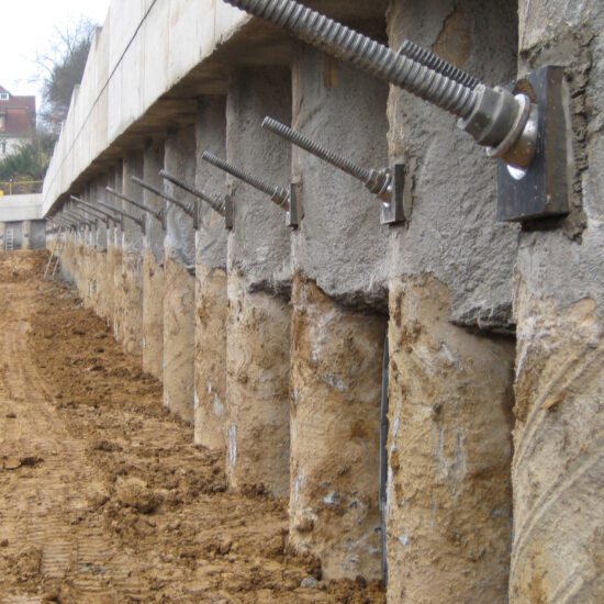 Anchors are a cost-effective solution for securing various types of retaining walls, temporary excavation shoring, and permanent slope stabilization, including retaining structures tailored to specific structural conditions. TITAN micropiles, used as tension piles in accordance with DIN EN 14199, have proven to be economical alternatives to permanently prestressed ground anchors under DIN EN 1537.