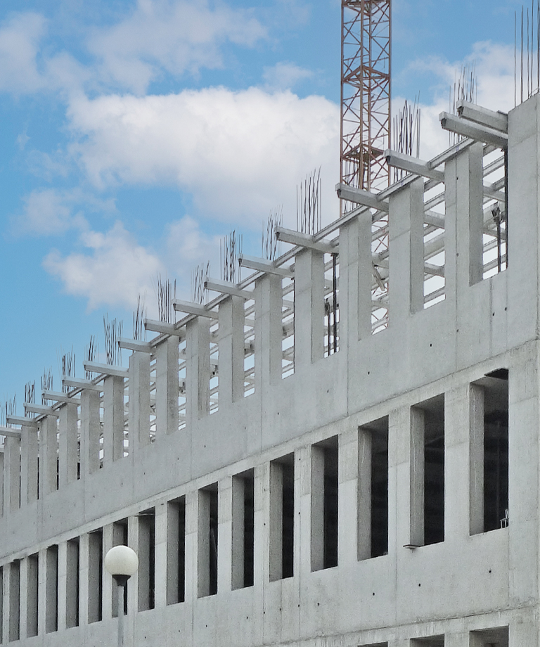 • Large areas, sometimes with cast-in-place concrete or mostly precast concrete floors