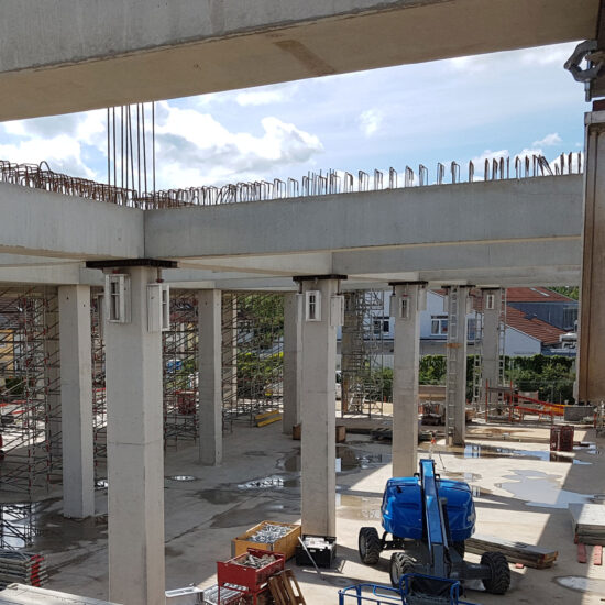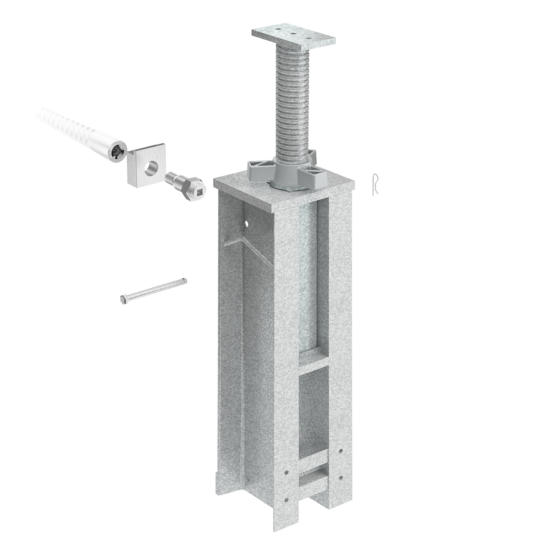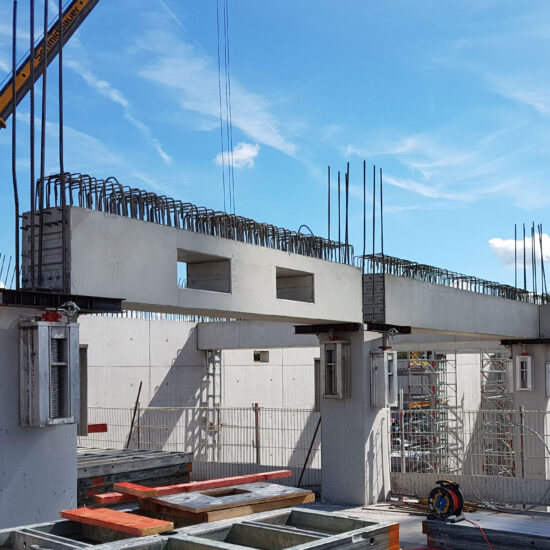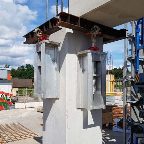 TITAN WK wall-mounted supports represent alternatives to conventional centering where elaborate and expensive temporary foundations would otherwise be necessary and openings must be kept clear for traffic. The support block for each wall-mounted support is fixed in place with a cast-in screw anchor that can be recovered afterwards. The structure is therefore supported on the wall-mounted supports fixed to the concrete wall cast in advance.