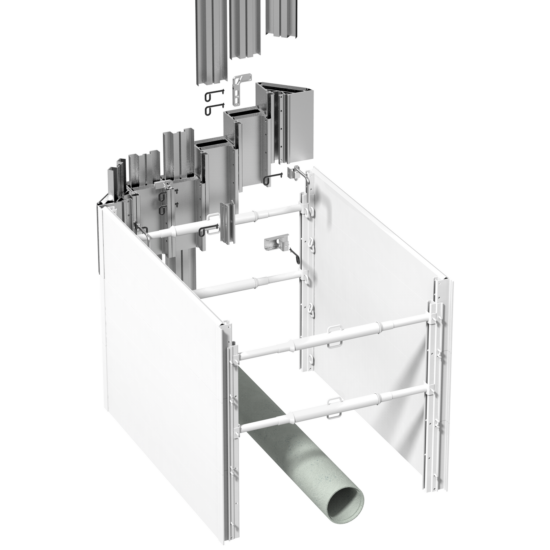 In many situations it is only the trench sides that are shored. Ends of trenches are frequently neglected because there are hardly any suitable systems available. There is often insufficient space to slope the end of a trench to prevent collapse. ISCHEBECK offers a standardised answer in the form of its GIGANT aluminium end-face shoring.