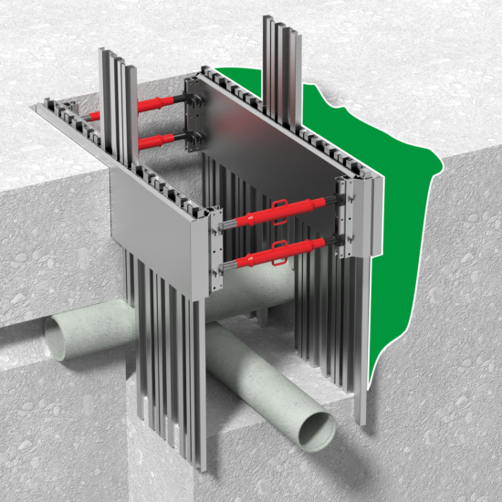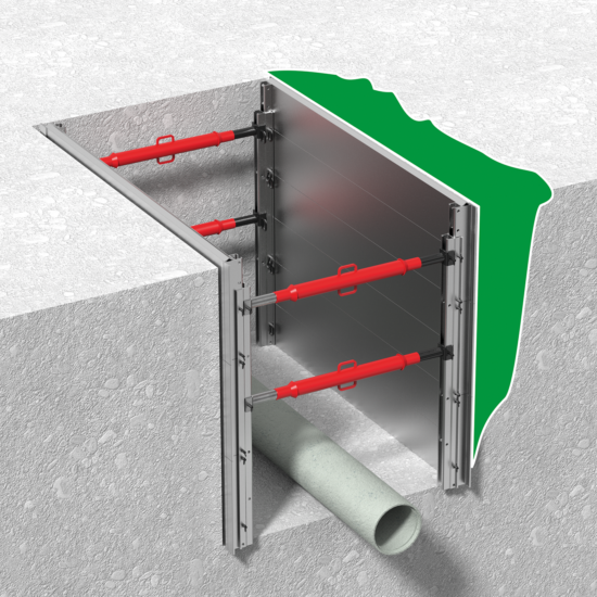 Please select the desired type of construction first. You can then individually adjust the length, width and depth of the aluminium trench shoring unit — the illustration next to the selection will update automatically.
