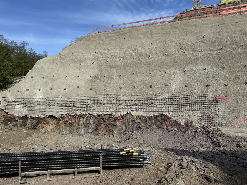 For the construction of each pier, eight pits had to be excavated in chal­lenging terrain, which required temporary support through anchored shotcrete walls. More than 10,000 linear me­tres of TITAN micropiles were installed.